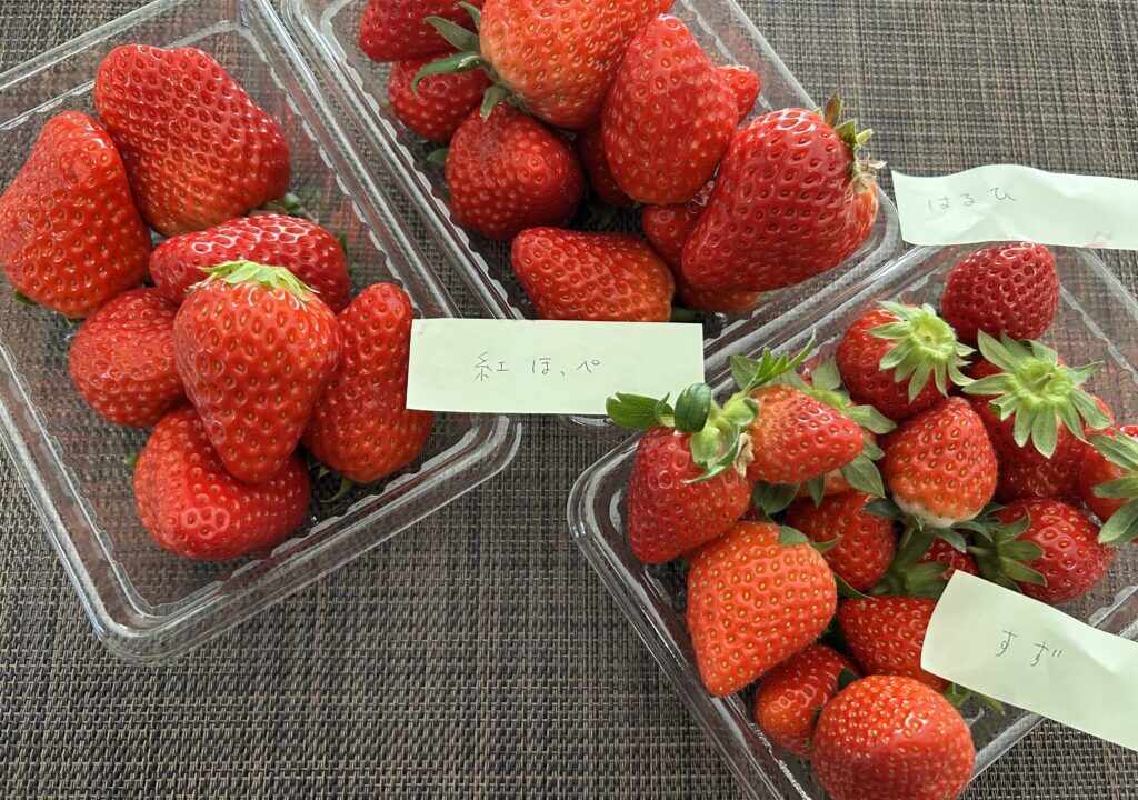 お好みいちご品種…紅ほっぺ・よつぼし・ほしうらら・ベリーポップ(すず・はるひ)