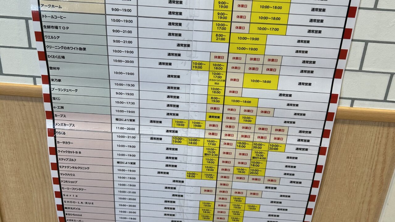 1月1日に営業している3店舗も営業時間が変更となりますので確認しておきましょう。