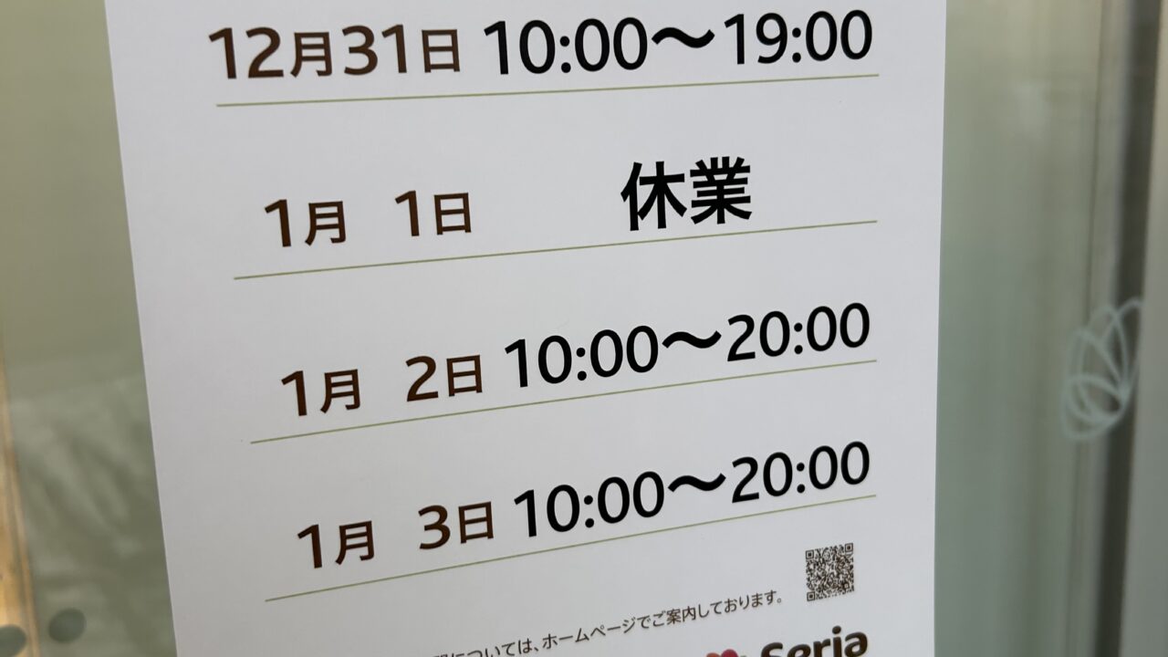 1月1日はダイソーもセリアも休みになります。