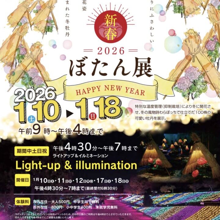 日中の牡丹を楽しむの良し、牡丹のライトアップ &イルミネーションを楽しむのも良しのイベントですね!