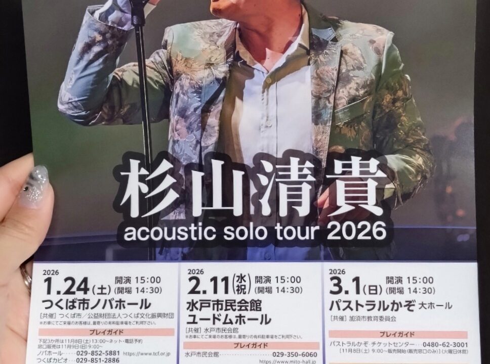 加須市 パストラルかぞで開催される「杉山清貴 acoustic solo tour 2026」は、【1月24日(土) 茨城県ノバホール公演】【2月11日(水・祝) 茨城県水戸市民会館公演】と続く、ツアー最終公演です。