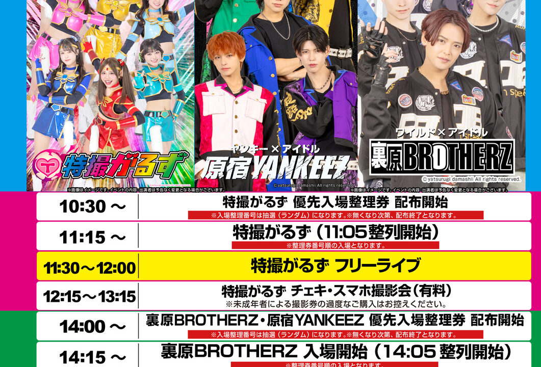特撮がるず&裏原BROTHERZ&原宿YANKEEZの豪華フリーライブが開催されます!