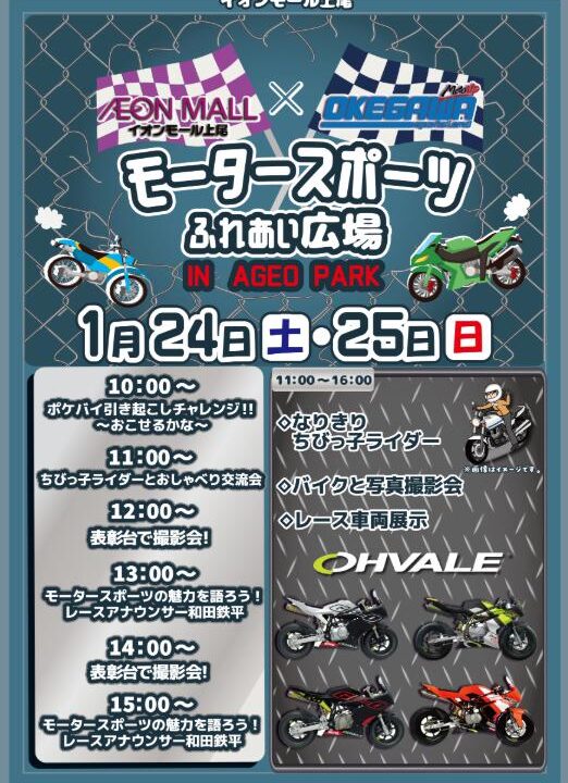 今回はイオンモール上尾で『モータースポーツふれあい広場』が開催されるとの情報をいただきましたので共有します。