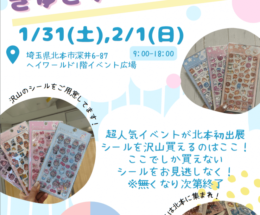 キラぷくシールぎゅぎゅっと販売会は1月31日と2月1日に開催されます。