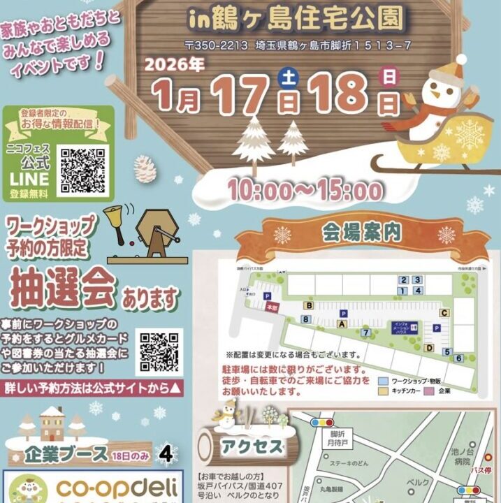 今回は、鶴ヶ島住宅公園で開催される「nikoフェス」の情報です。