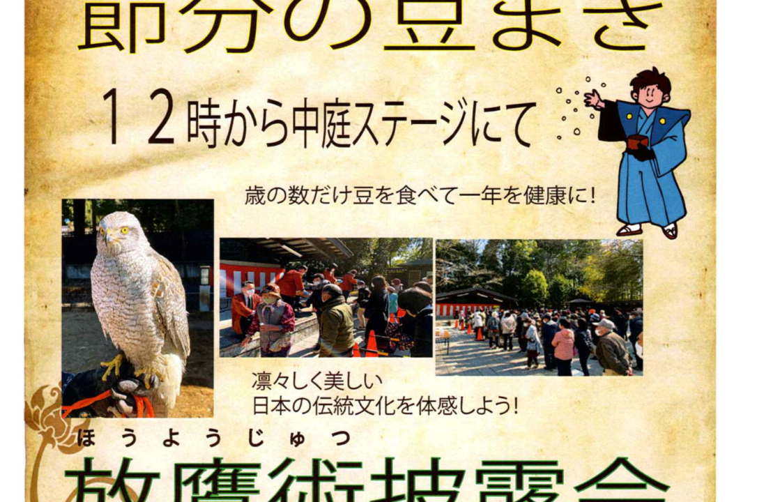 桶川市で節分の豆まきを楽しみ、放鷹術を見れる楽しみなイベントです。