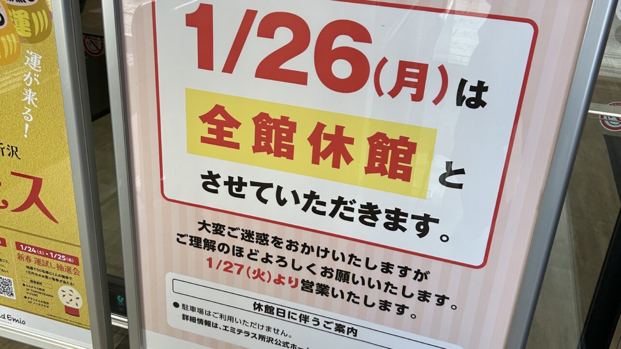 今回は1月26日はメンテナンスのため『エミテラス所沢』が全館休業となるので情報を共有します。