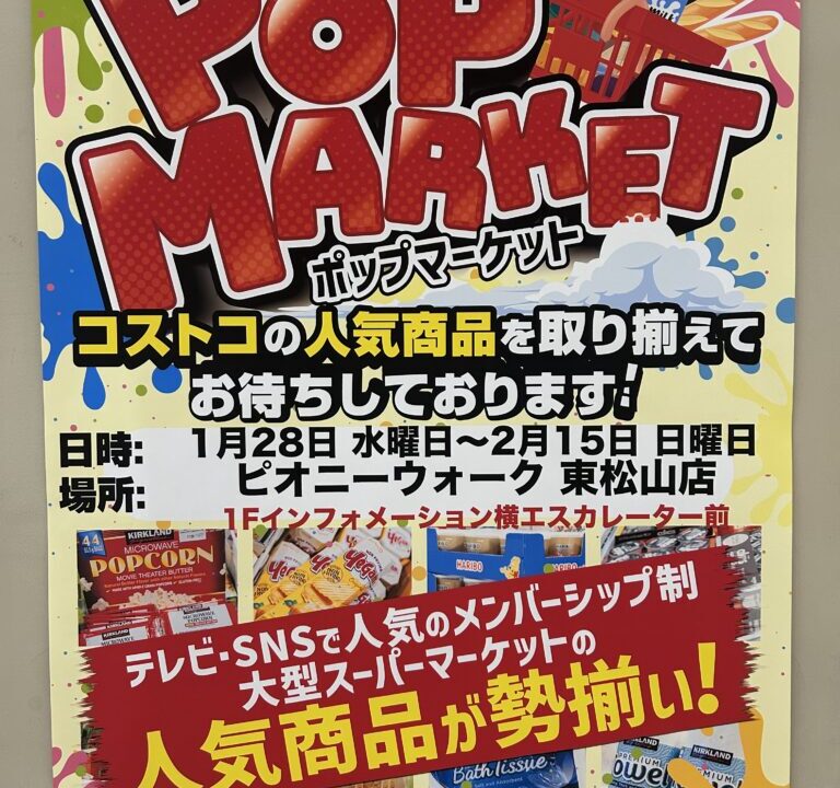 「POP MARKET(ポップマーケット)」というイオンモールやららぽーとなどの大手ショッピングモールで催事販売をしている、コストコ商品を取り扱っているお店です。