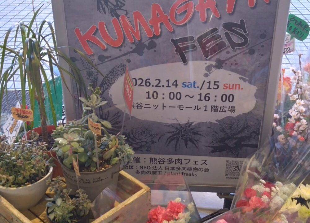 今回は、熊谷市ニットーモールにて、2月14日(土)・15日(日)の2日間に渡って開催される、注目の多肉植物イベント「KUMAGAYA FES(熊谷フェス)」の情報をお届けします。