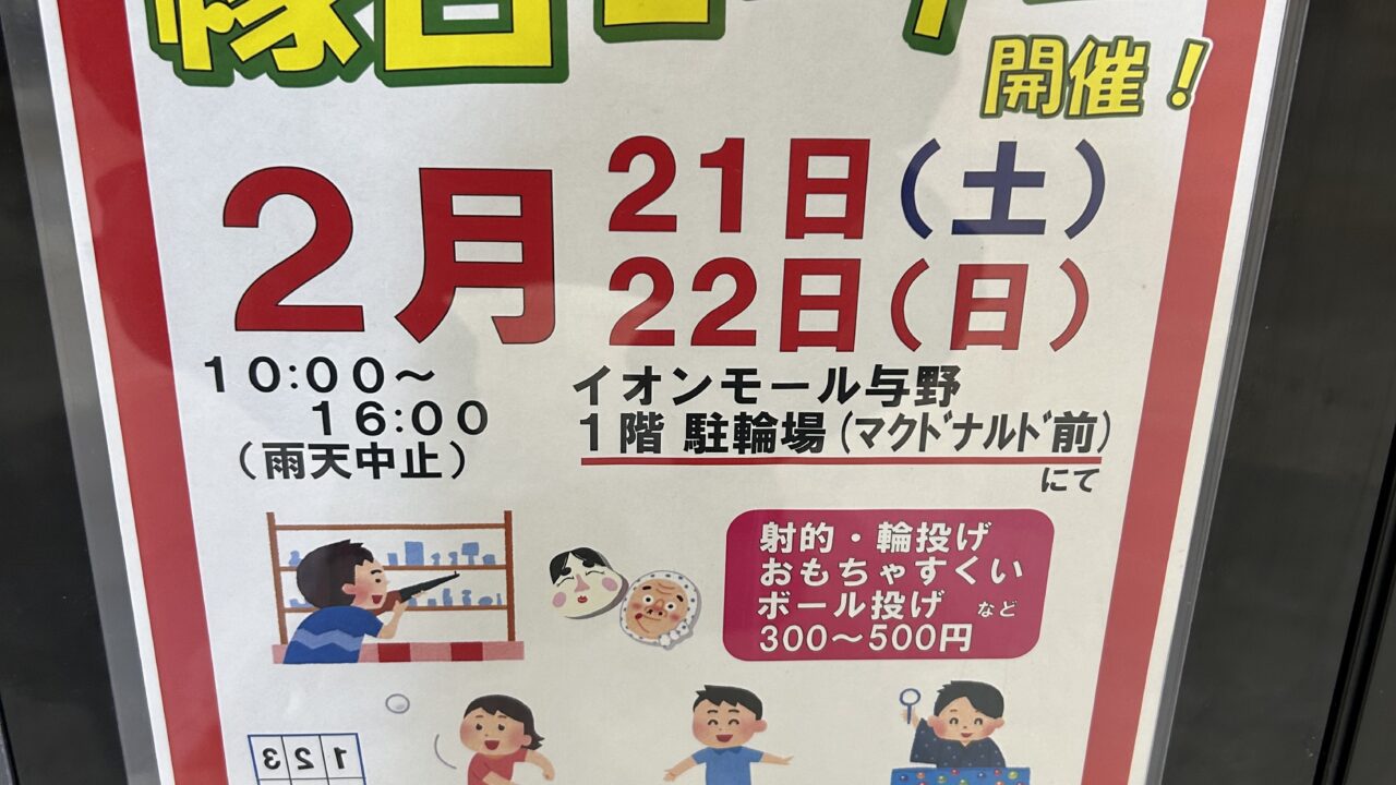 今回はイオンモール与野で『縁日コーナー』が開催されるので情報を共有します。