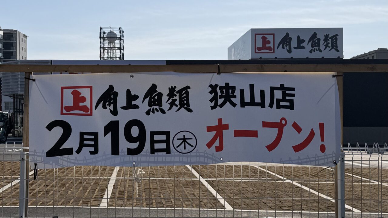 「⾓上⿂類 狭山店」のオープン情報でした。