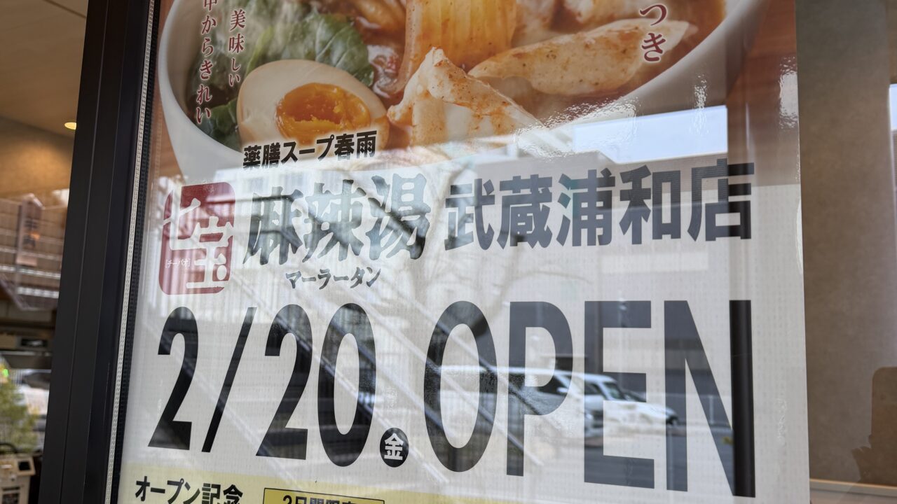 明日オープンする「七宝麻辣湯(チーパオマーラータン)武蔵浦和店」の情報でした。