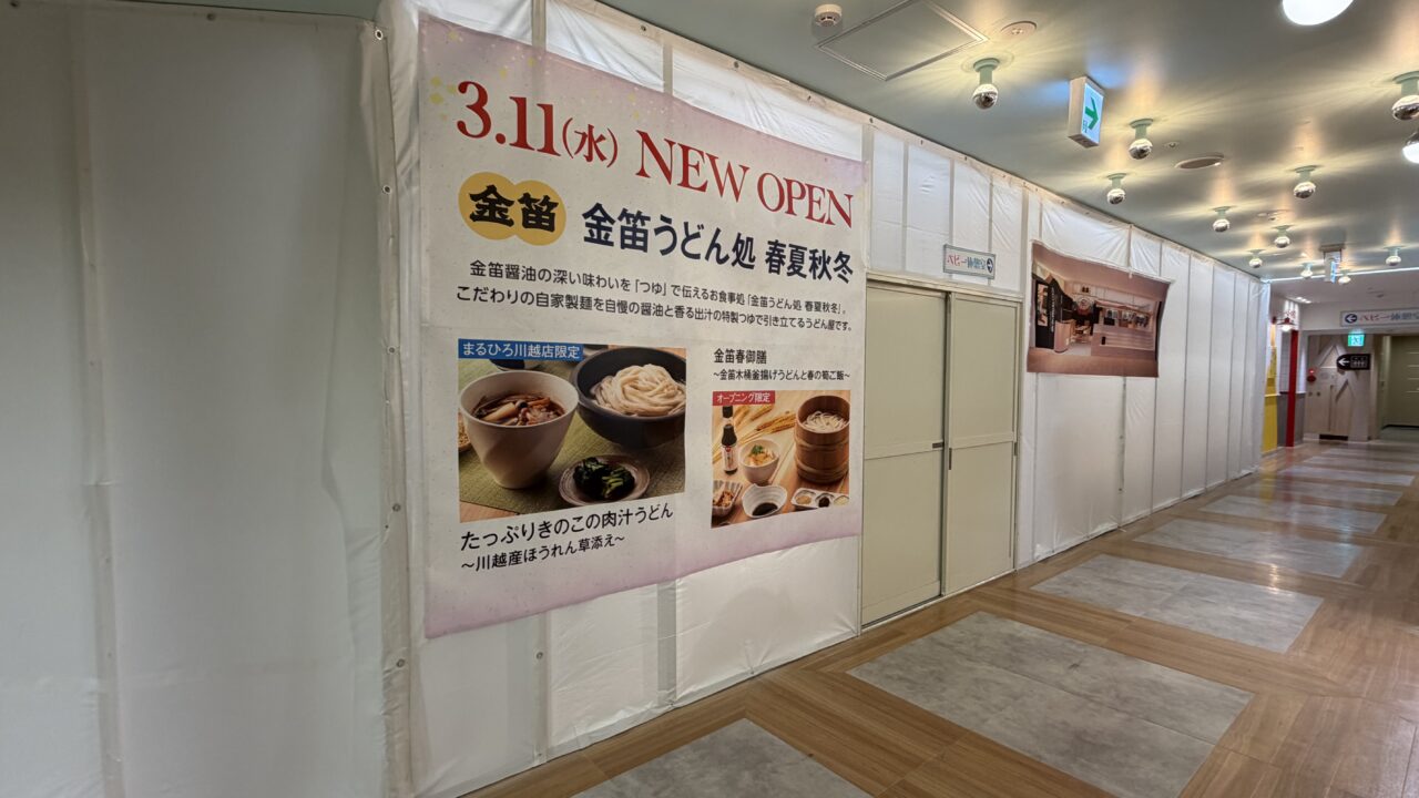 今回は、まるひろ川越店にオープンする「金笛うどん処 春夏秋冬」の情報です。