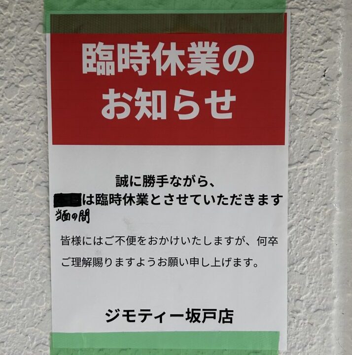 今回は「ジモティースポット 坂戸店」臨時休業していましたので情報を共有します。