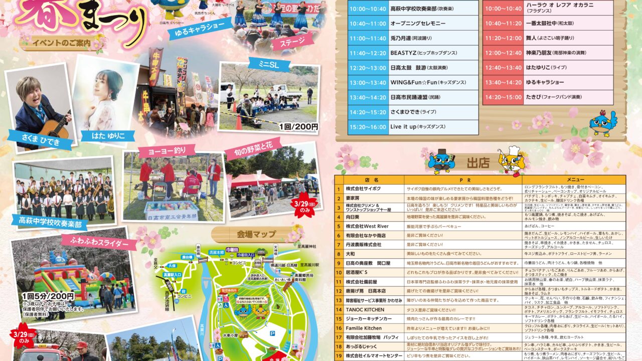 桜の時期に開催され、ステージやふわふわスライダー・グルメなど楽しみなイベントになっています。