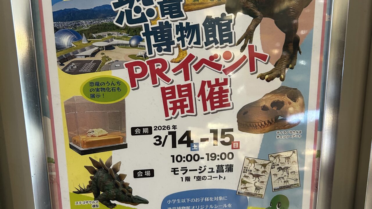 今回はモラージュ菖蒲で『福井県立恐竜博物館PRイベント』が開催されるので情報を共有します。