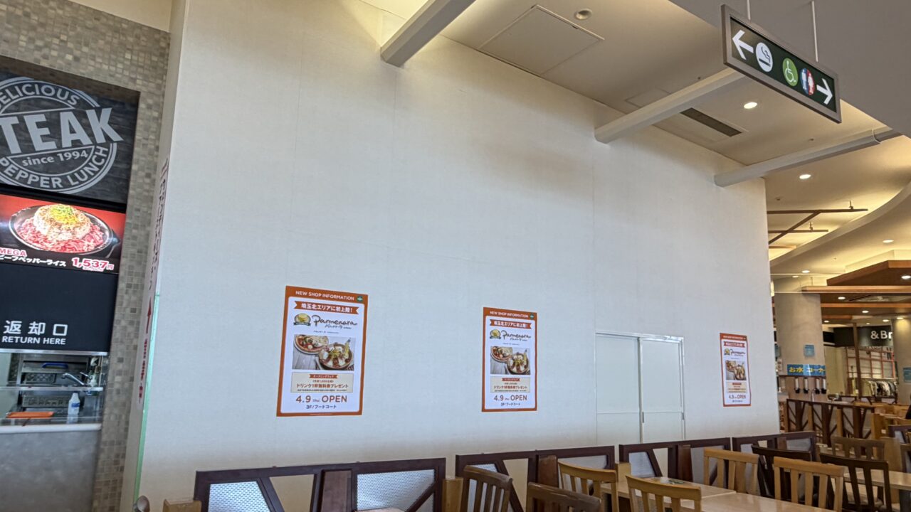 今回は、モラージュ菖蒲のフードコートにイタリアンのお店「パルメナーラ」がオープンするとの情報が入ったので共有します。