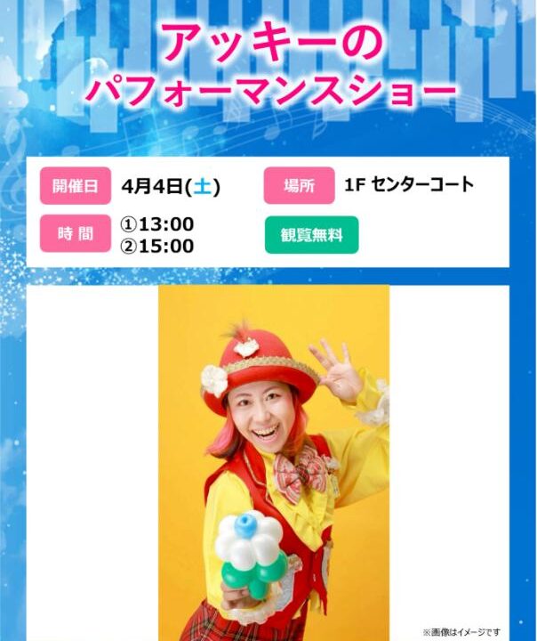 今回はベニバナウォーク桶川で『アッキーのパフォーマンスショー』が開催されるので情報を共有します。