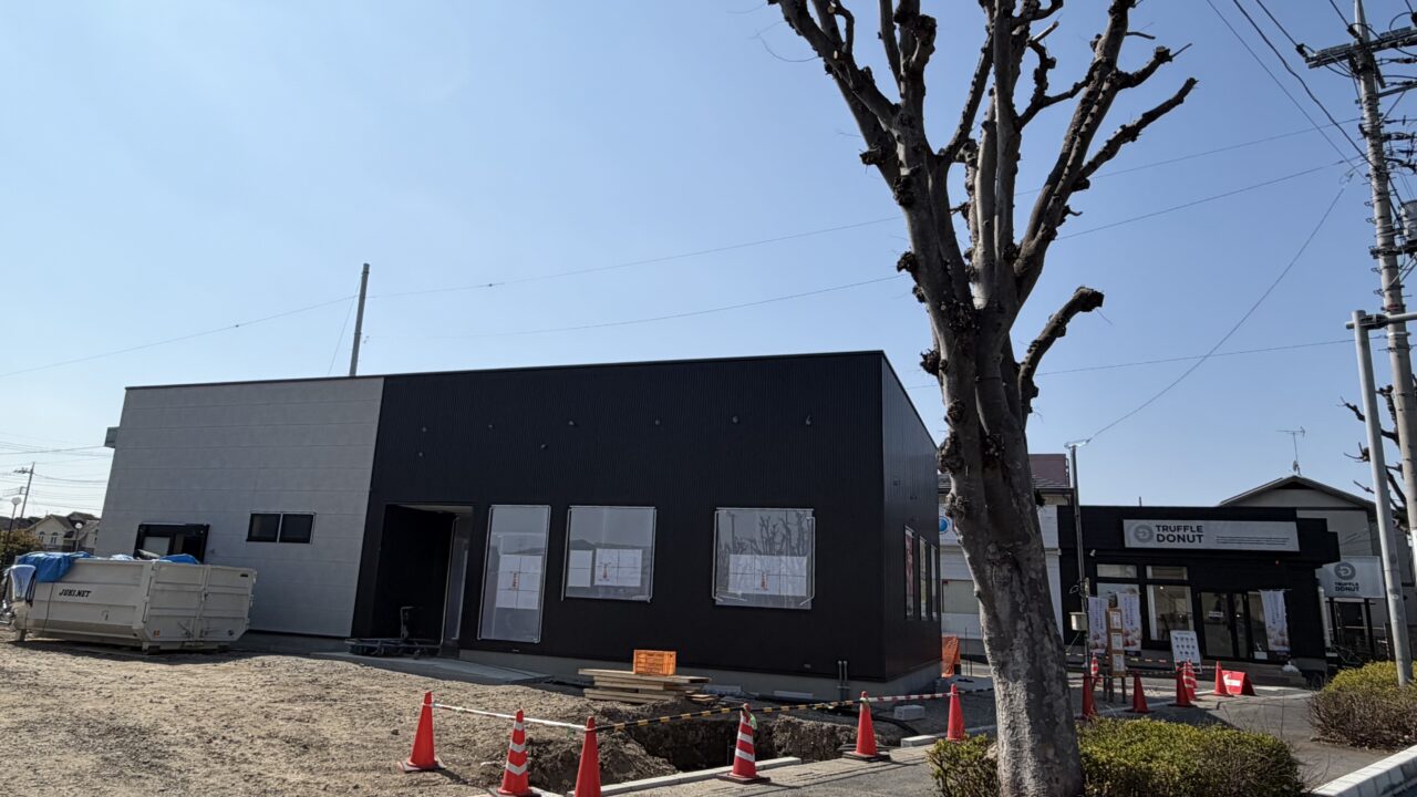 県道153号線沿い、行列のできる人気生ドーナツ専門店「TRUFFLEDONUT(トリュフドーナツ)」の向かい。