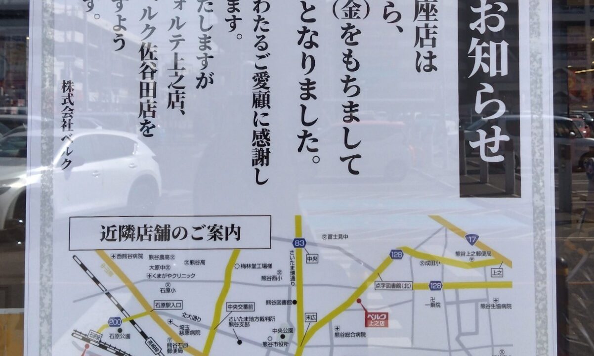 残念ですが、熊谷市銀座にある「ベルク 熊谷銀座店」が閉店することがわかりました!