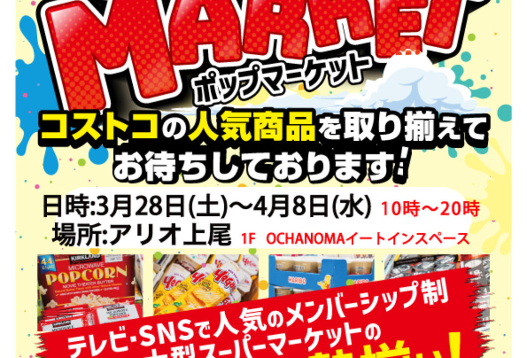 今回はアリオ上尾でコストコの人気商品が勢揃いする『POP MARKET』が開催されるので情報を共有します。