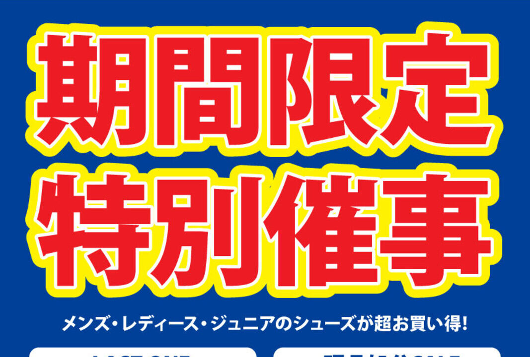 メンズ・レディース・ジュニアのシューズが超お買い得で買えるチャンスです。