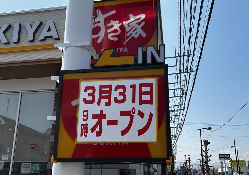 2026年3月2日(月)より改装工事のため一時閉店していた「すき家 坂戸にっさい店」が3月31日(火)9:00にオープンします!