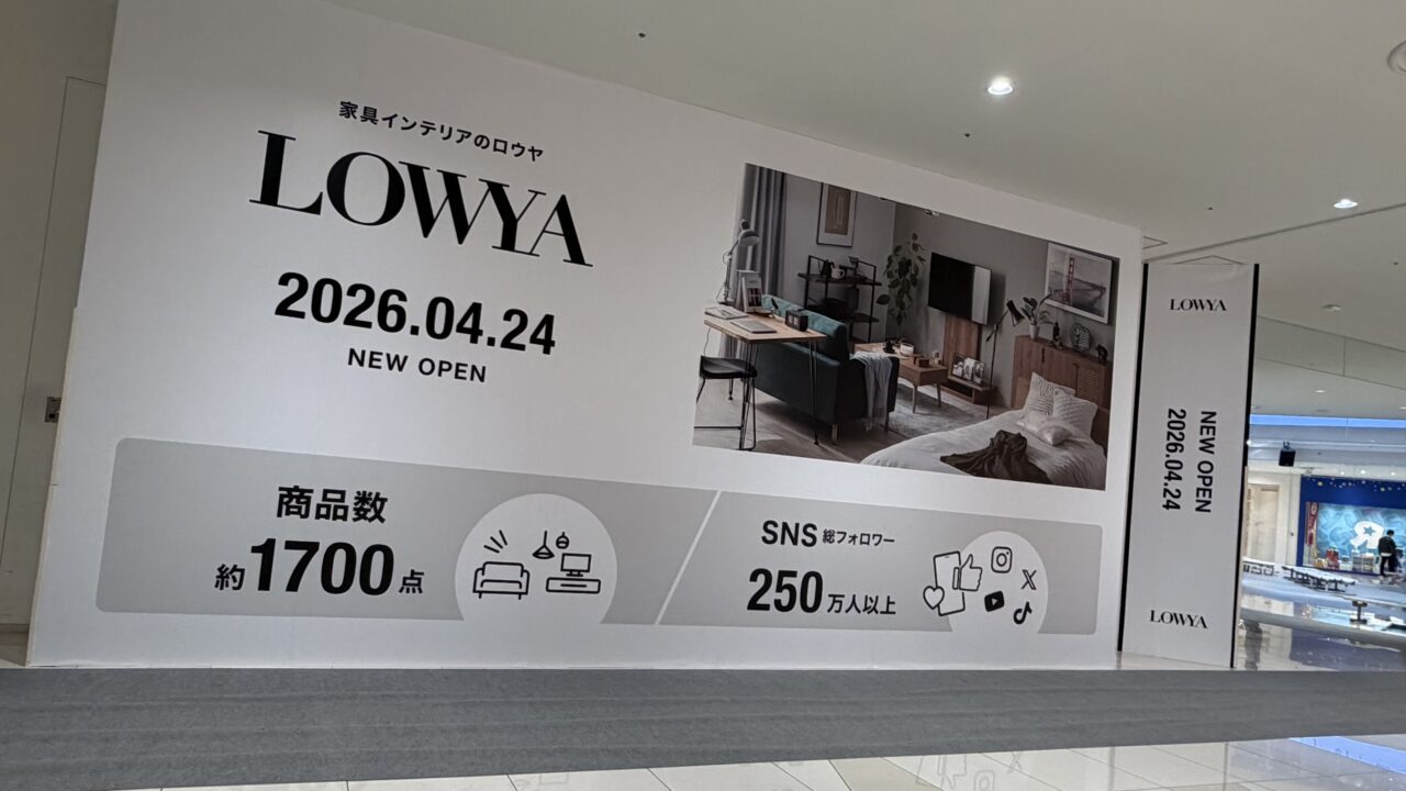 ららぽーと富士見にオープンする「LOWYA(ロウヤ)」の情報でした。