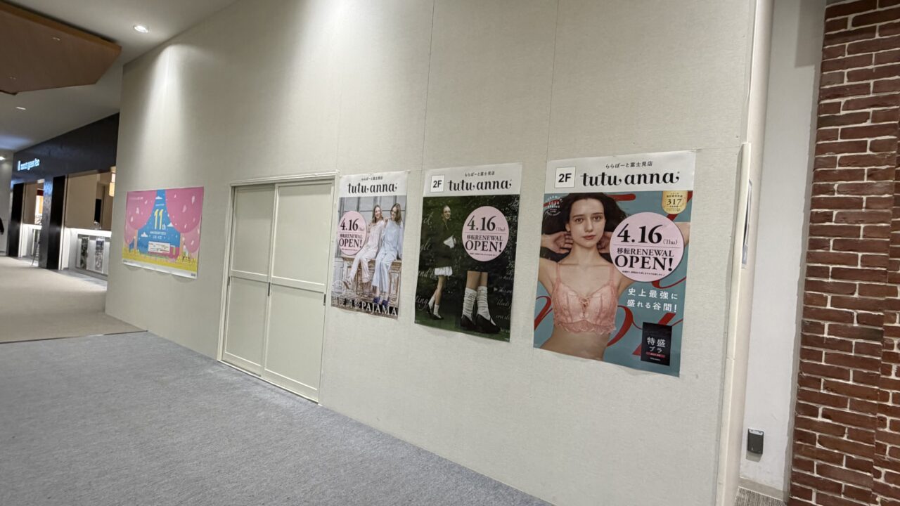 ららぽーと富士見に「チュチュアンナ」は元々ありましたが、1月12日をもって一時閉店となっていました。