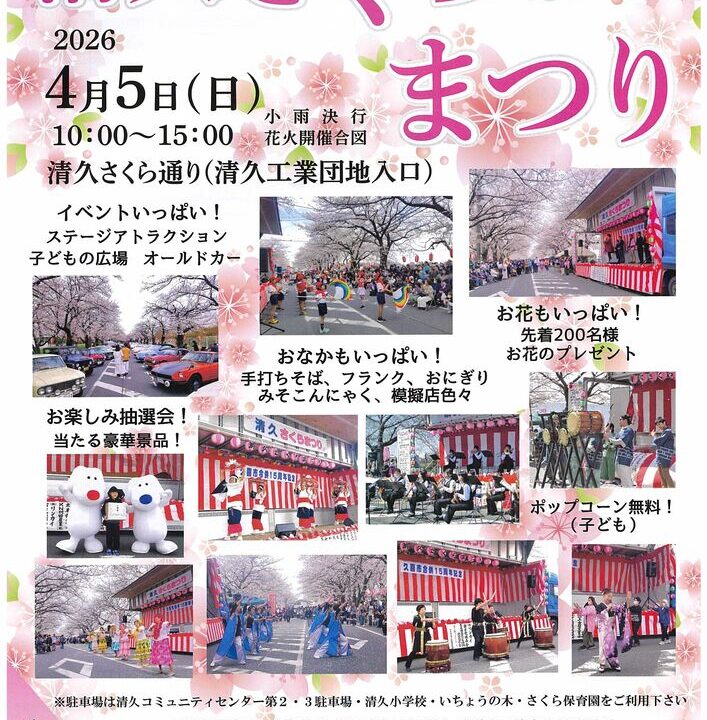 今回は『第33回清久さくらまつり』が4月5日に開催されるので情報を共有します。
