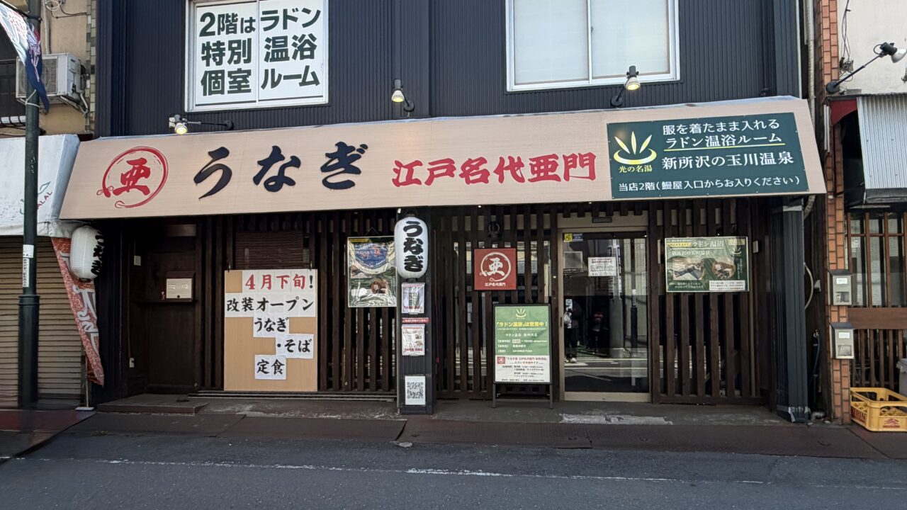 今回は、「うなぎ屋 江戸名代亜門 新所沢店」が改装オープンするとの情報が入ったので共有します。
