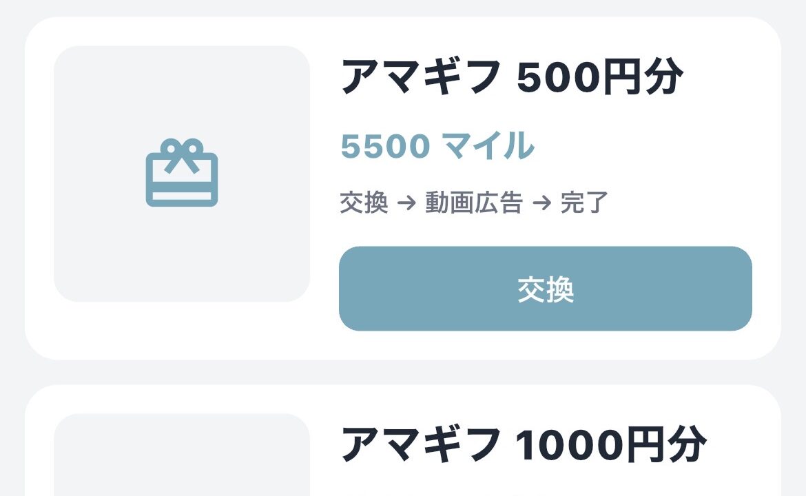 新アプリでは、ポイントをマイルに変換しアマゾンギフト券と交換できる仕組みになっています。