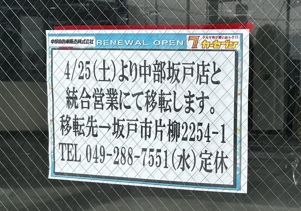 「カーセブン坂戸店」移転の情報でした。
