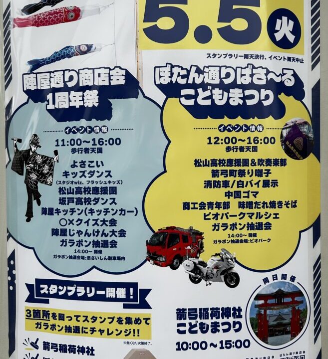 今年は陣屋通り商店会1周年祭とぼたん通りばざーる こどもまつりの2つの商店会に加え、箭弓稲荷神社のこどもまつりも同日開催!