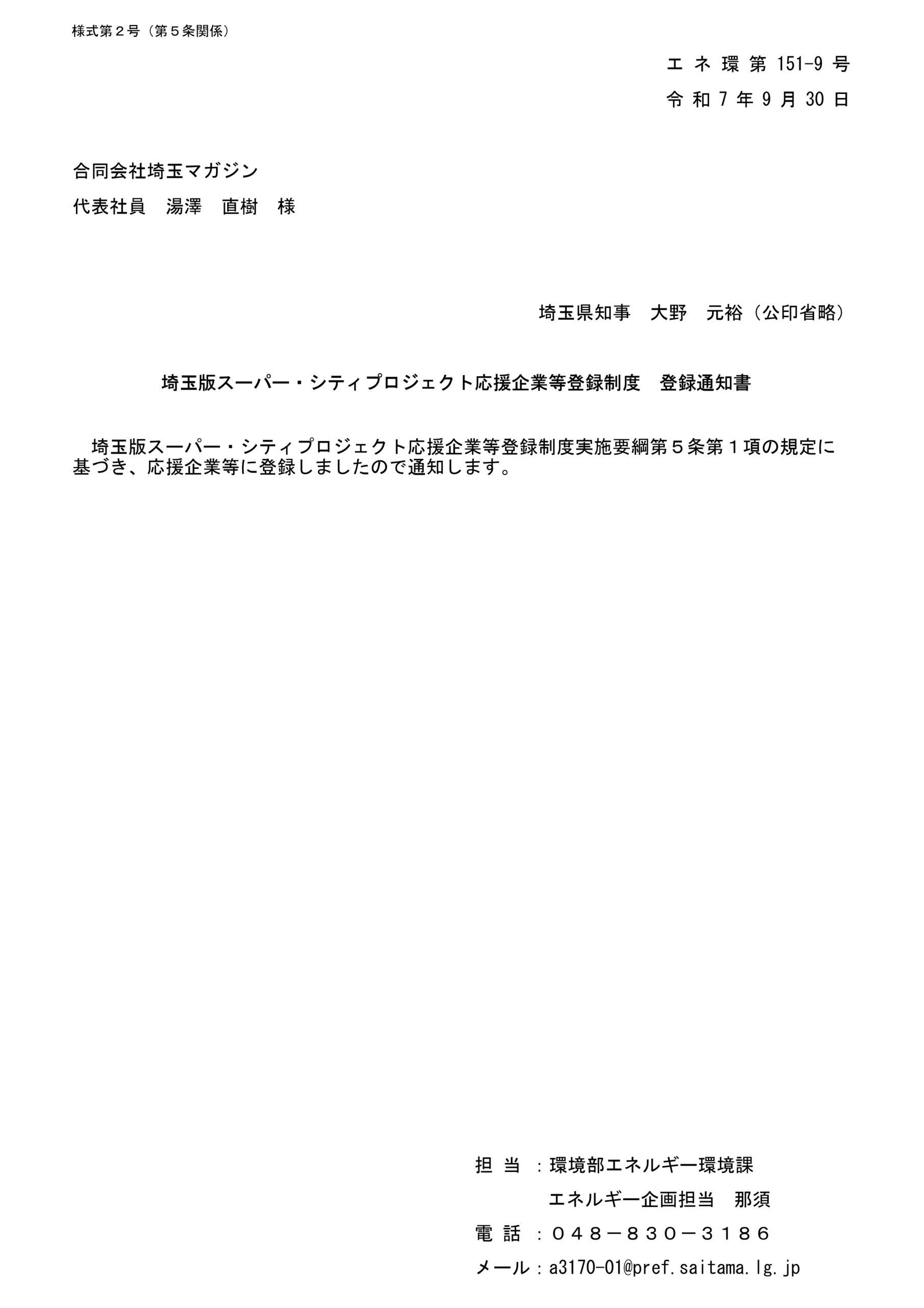 埼玉版スーパー・シティプロジェクトに賛同しました。