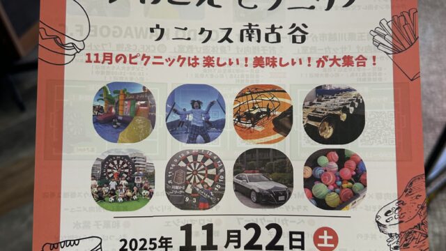 イベント情報 【川越市】人気の恒例イベント♪「かわごえピクニック」が11月22日(土)に開催されます! 2025年11月18日 まーみー https://saitama-city-marathon.jp/wp-content/uploads/2025/09/4e2d7087313ba0a483032f29eb8d8bed.png 埼玉マガジン