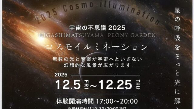 イベント情報 【東松山市】いよいよ始まります♪東松山ぼたん園でコスモイルミネーションが開催! 2025年12月3日 まーみー https://saitama-city-marathon.jp/wp-content/uploads/2025/09/4e2d7087313ba0a483032f29eb8d8bed.png 埼玉マガジン