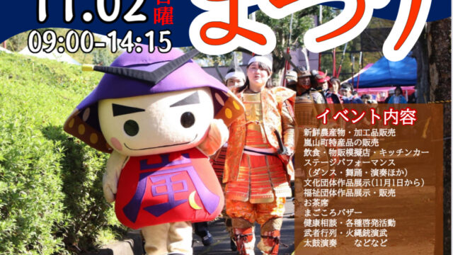 イベント情報 【嵐山町】今年も楽しみ♪11月2日に「第44回 嵐山まつり」が開催されます! 2025年10月25日 まーみー https://saitama-city-marathon.jp/wp-content/uploads/2025/09/4e2d7087313ba0a483032f29eb8d8bed.png 埼玉マガジン