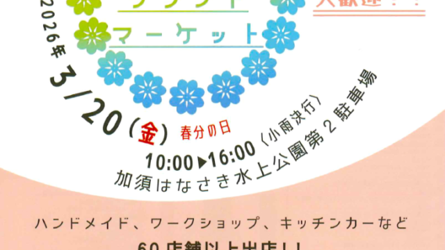 【加須市】春分の日(3/20)のお出かけに。加須はなさき公園で「はなさくクラフトマーケット」が開催されます!